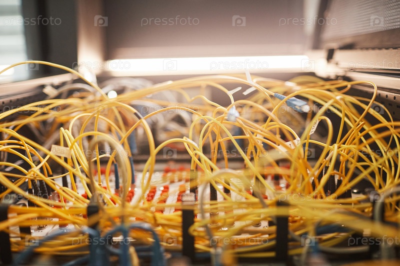 Желтые провода в серверной комнате