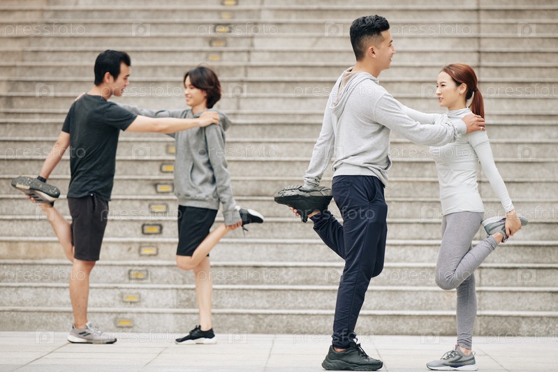 Молодые люди тренируются парами
