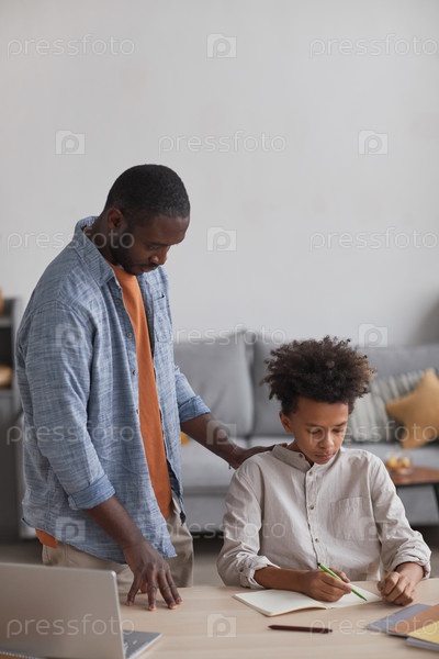 Отец помогает мальчику делать домашнее задание