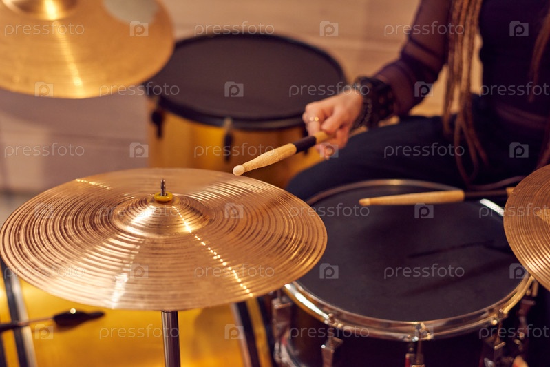 Женщина играет на барабанах