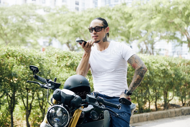 Мужчина, стоящий рядом с мотоциклом