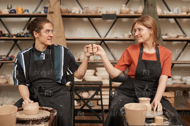 Команда молодых ремесленников в мастерской