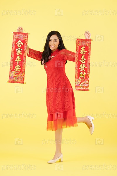 Азиатская женщина с украшением стен