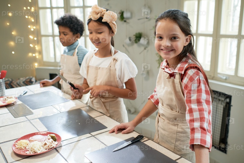 Группа детей на уроке кулинарии