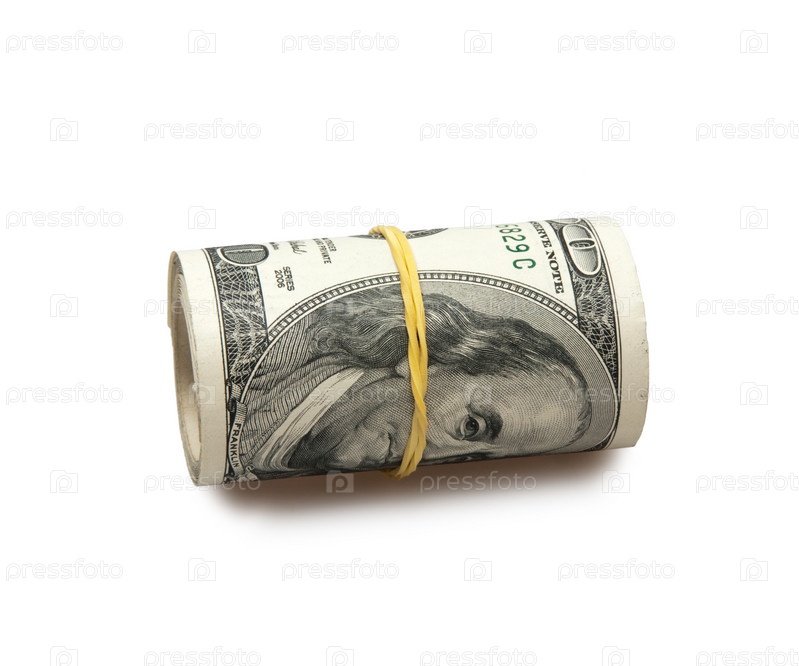 Рулон долларов на белом фоне