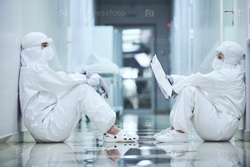 Хирурги сидят в коридоре больницы