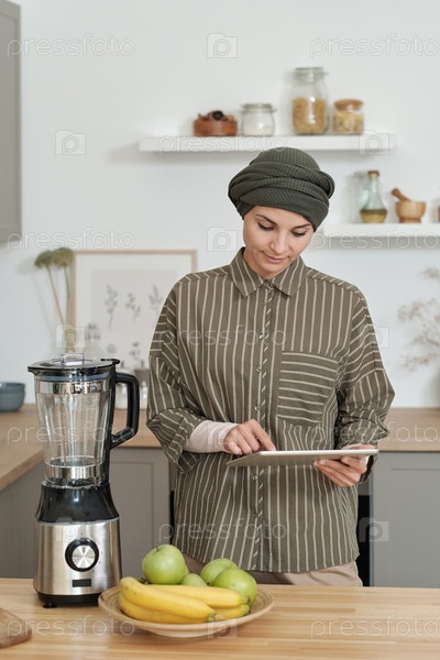 Мусульманская женщина использует цифровой планшет