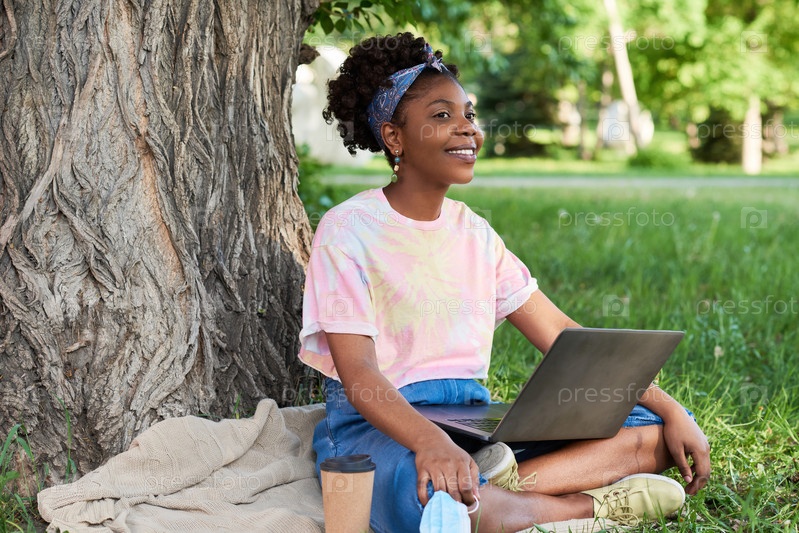Деловая женщина, работающая на ноутбуке на открытом воздухе