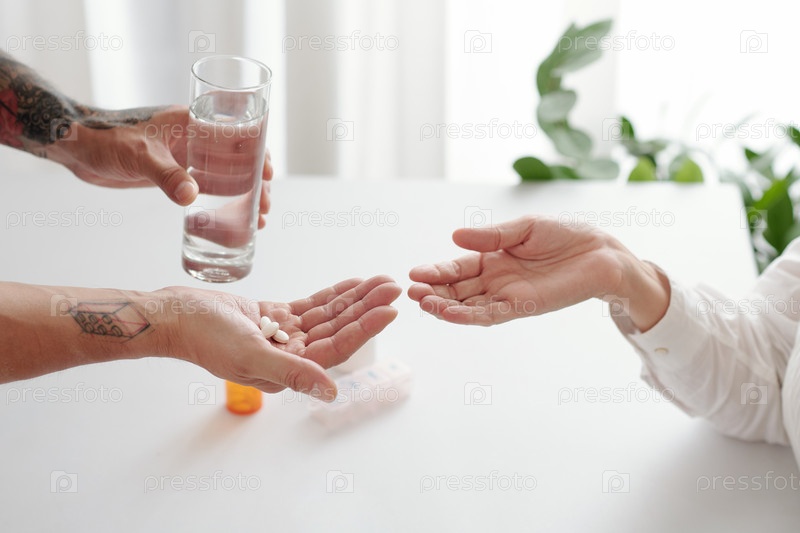 Сын дает таблетки матери