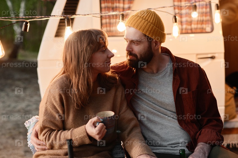 Пара пьет чай на свежем воздухе