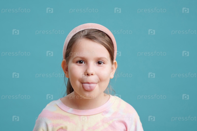 Милая девочка, показывающая язык