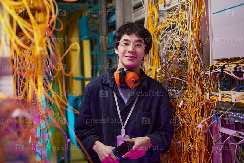 Техник в серверной комнате Молодой