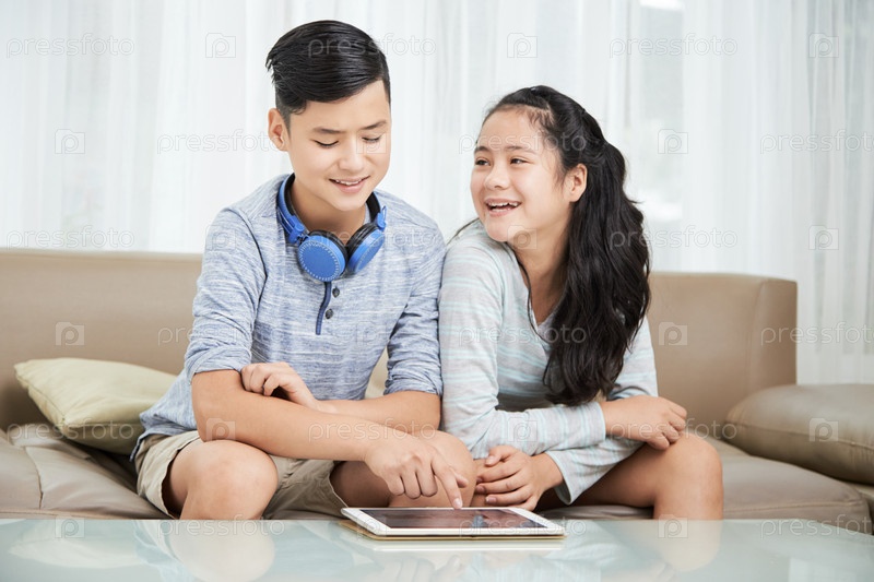 Брат и сестра смотрят видео