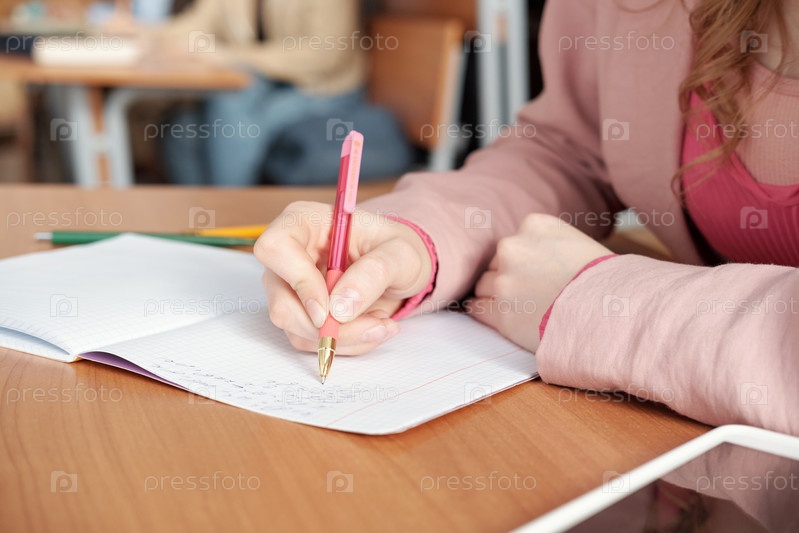 Руки студентки, делающей заметки в копийке
