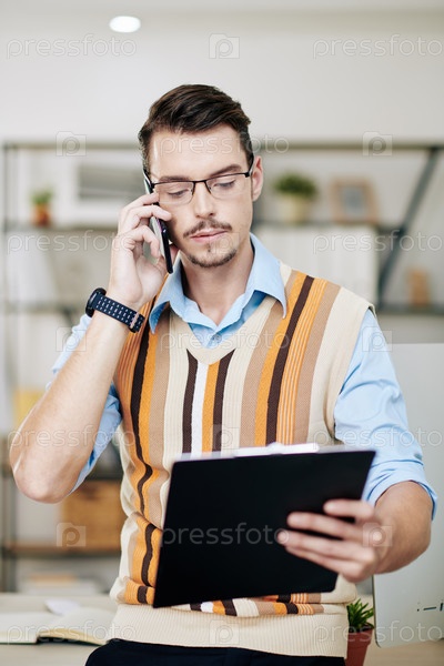 Серьезный бизнесмен делает телефонный звонок