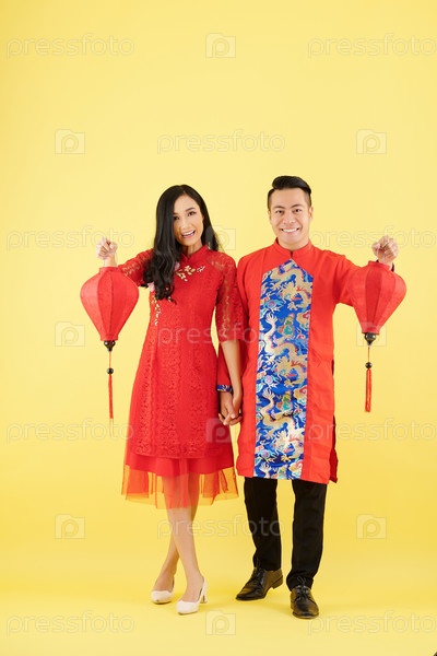 Пара с шелковыми фонарями