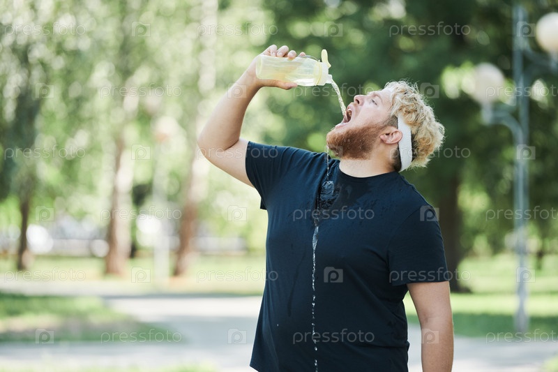 Мужчина пьет воду на открытом воздухе