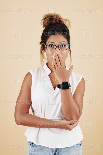 Взволнованная молодая женщина в шоке
