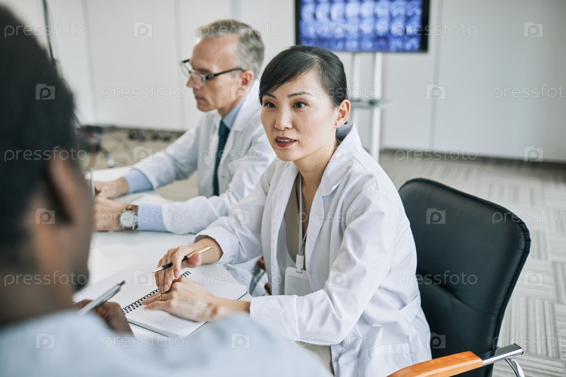 Женщина-врач, выступающая в Медицинском совете