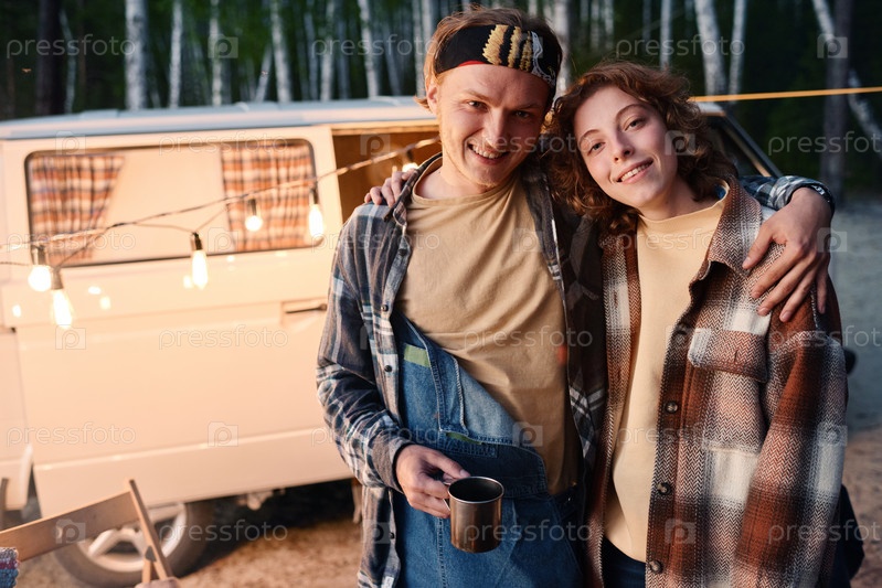 Счастливая молодая пара на природе