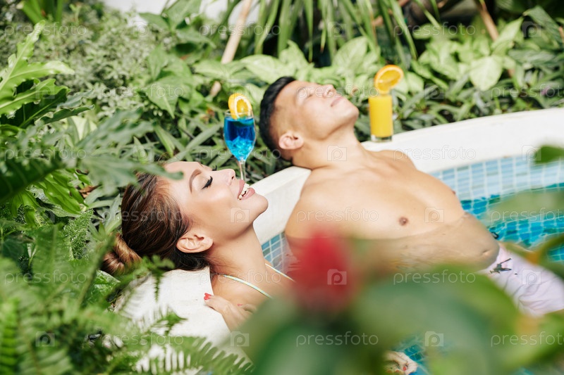 Пара освежается в бассейне