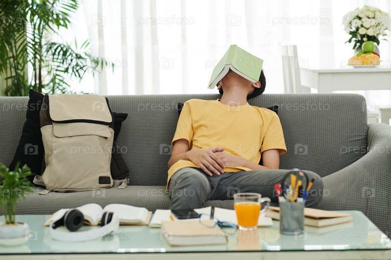 Мальчик заснул после учебы