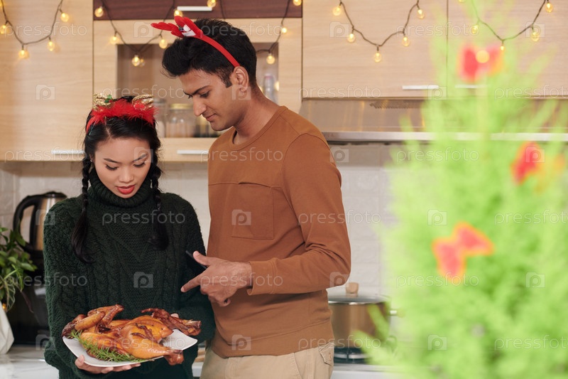 Пара обсуждает рождественское блюдо