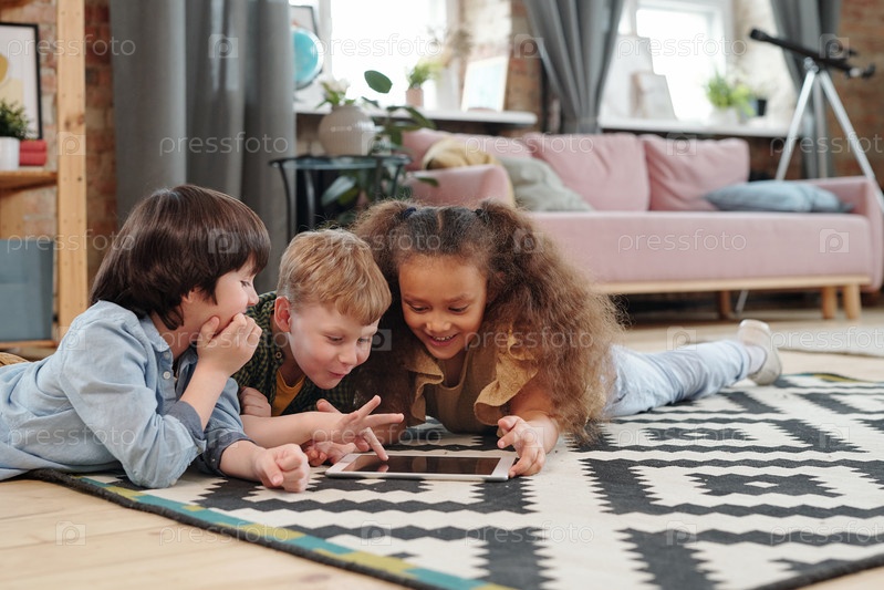 Дети, использующие планшетный компьютер дома
