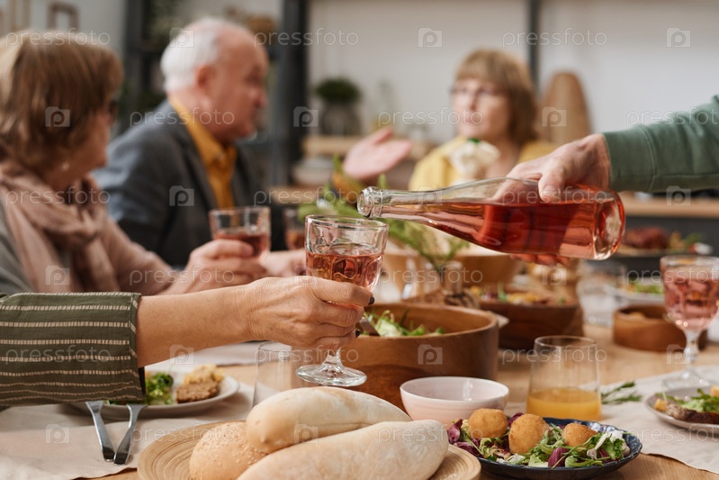 Люди пьют вино за столом