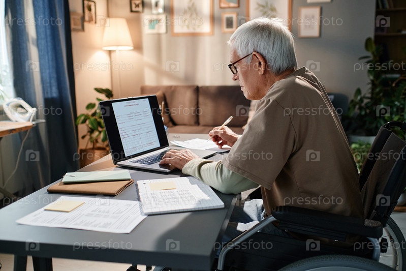 Старший мужчина работает в Интернете из дома