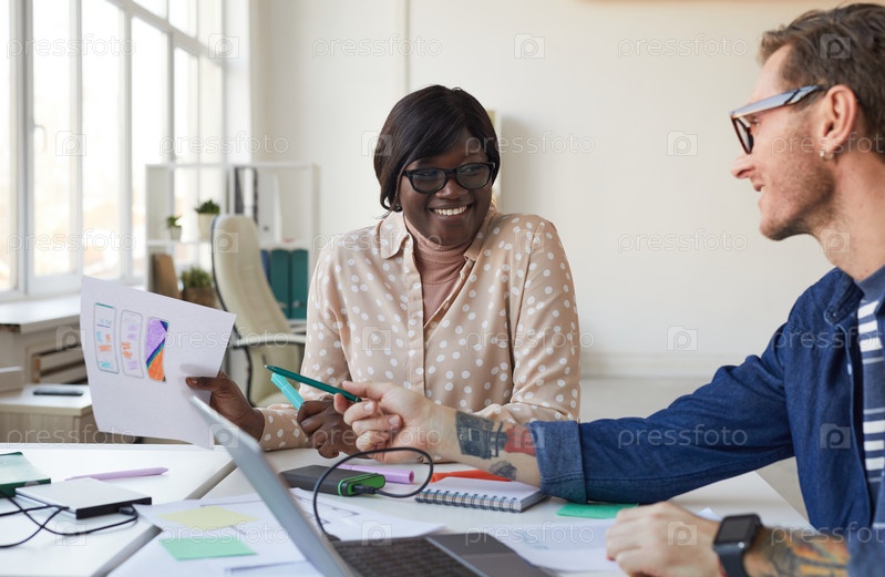 Улыбающиеся ИТ-разработчики, проектирующие веб-приложения