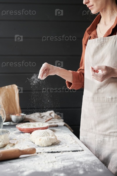 Женщина делает тесто для выпечки пирогов