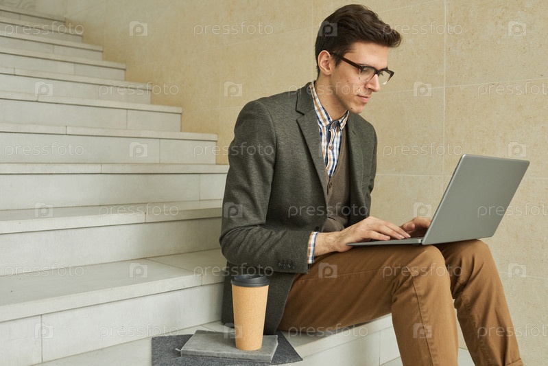 Мужчина, работающий онлайн на ноутбуке