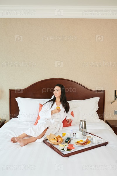 Женщина завтракает в постели