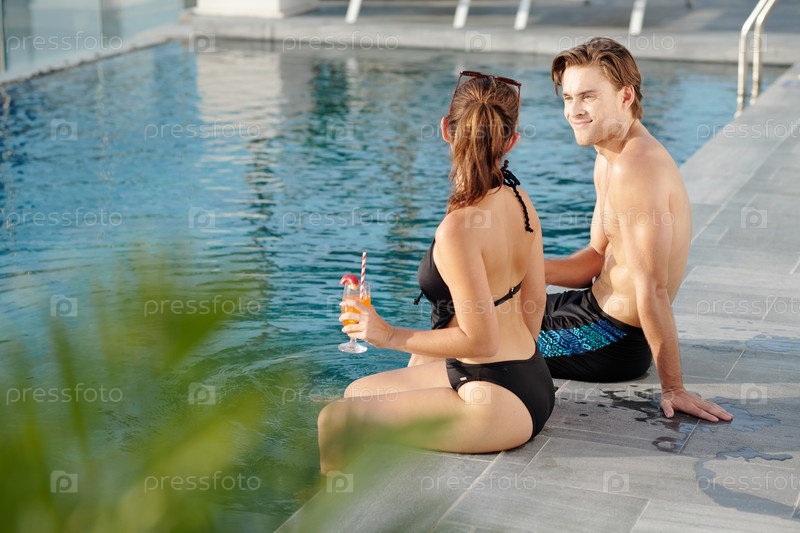 Пара пьет в бассейне