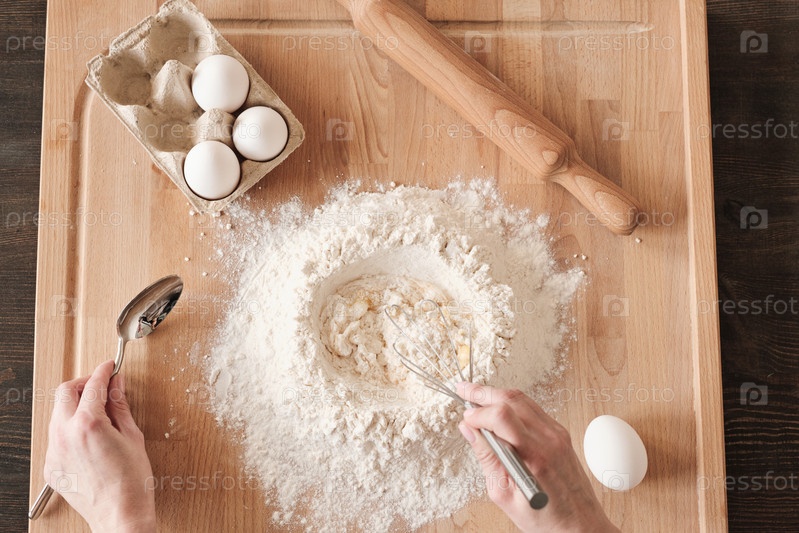 Смешивание муки и яйца