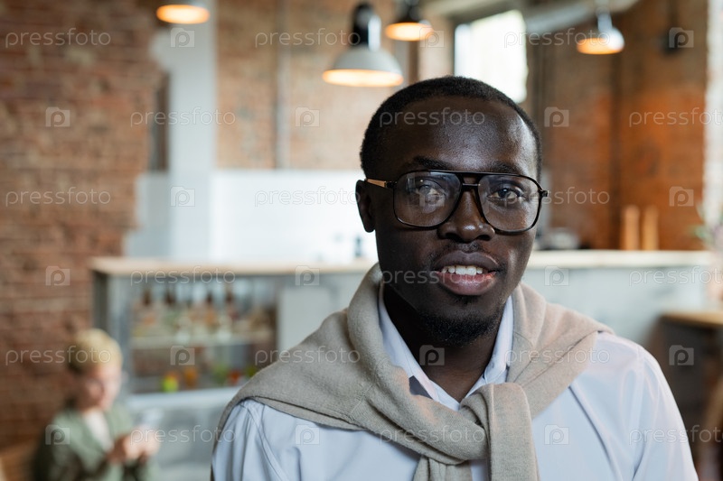 Уверенный в себе африканский бизнесмен стоит перед камерой