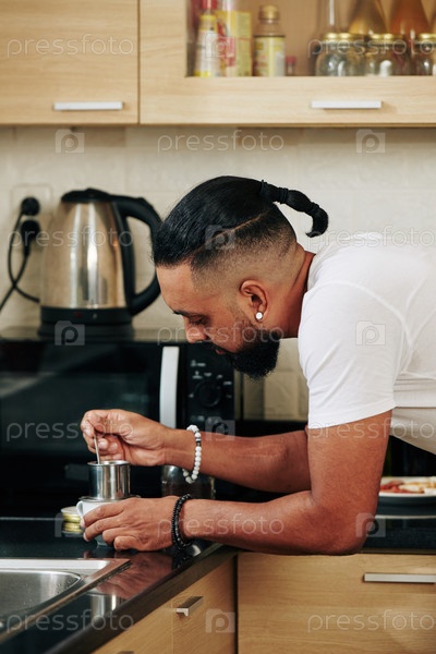 Мужчина, использующий вьетнамский кофейный фильтр