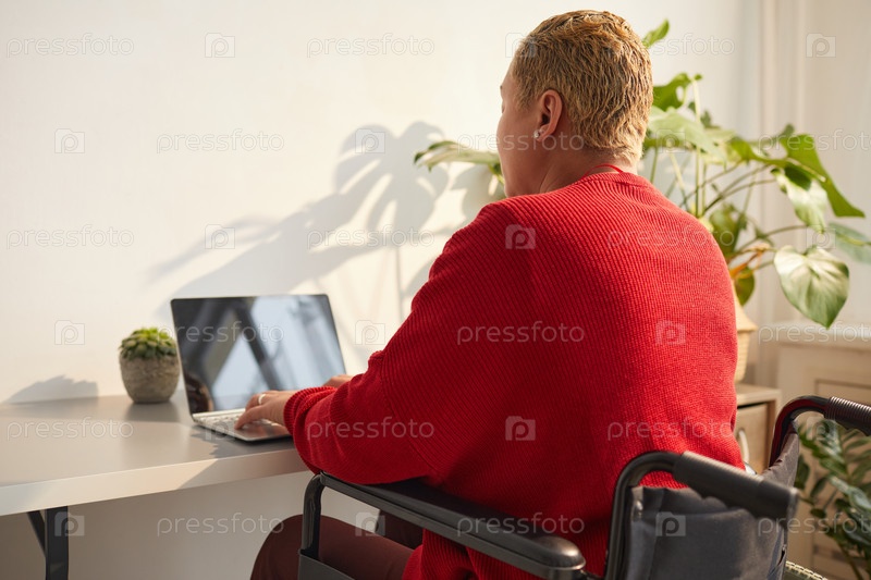 Женщина-пользователь инвалидной коляски в домашнем офисе