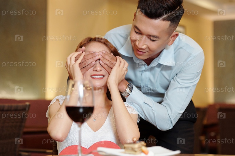 Мужчина, закрывающий глаза девушке мужчиной