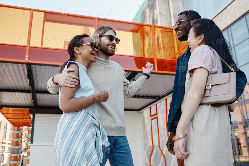 Встреча друзей в группе городской улицы