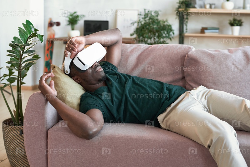 Мужчина отдыхает на диване дома