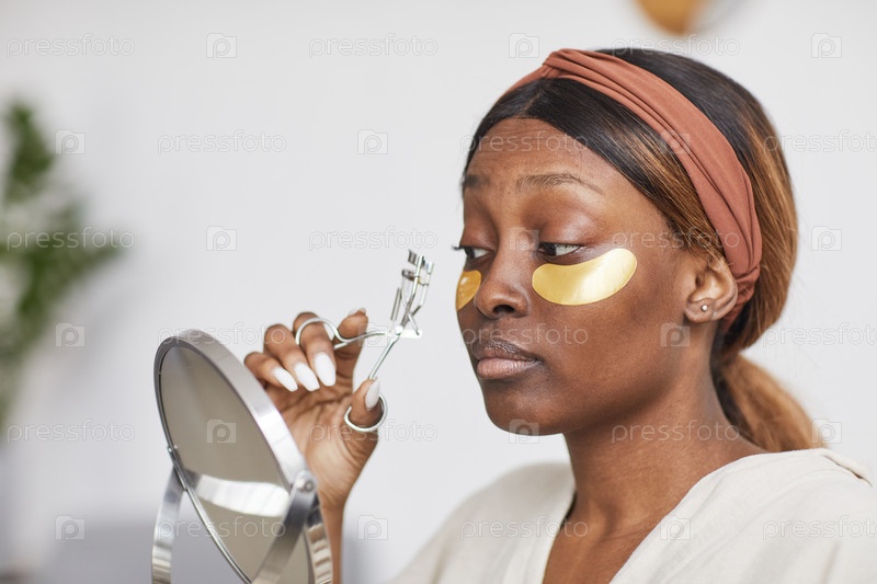 Афроамериканская женщина наслаждается рутиной красоты