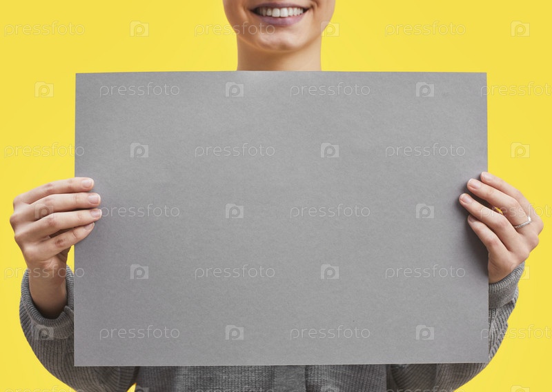Женщина, держащая знак на желтой женщине