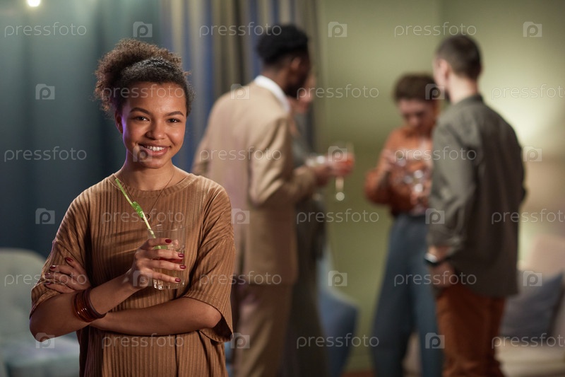 Улыбающаяся молодая женщина на закрытой вечеринке