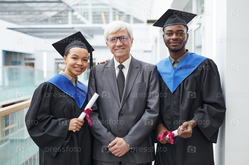 Студенты позируют с профессией на церемонии выпуска
