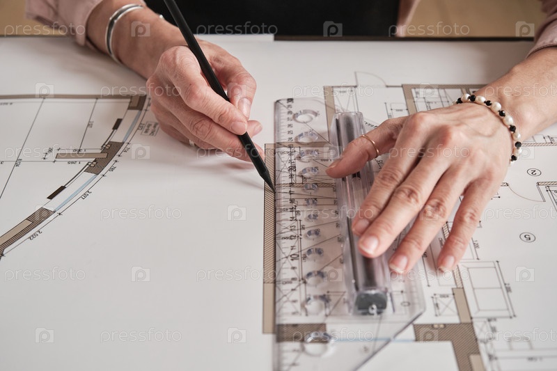Дизайнер-архитектор, работающий с планом этажа