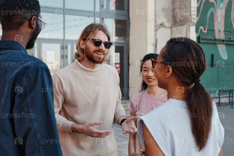 Встреча друзей на городской улице