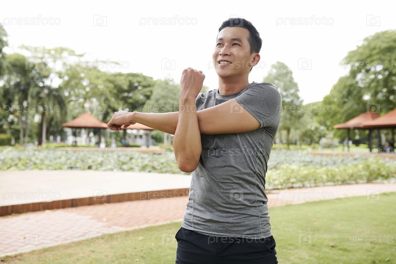 Подходящий мужчина растягивает руки