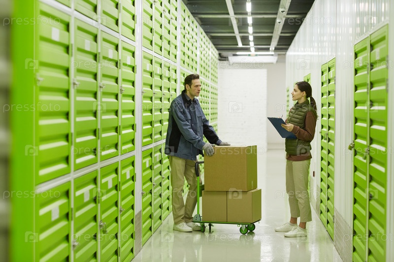 Люди, работающие с посылками на складе